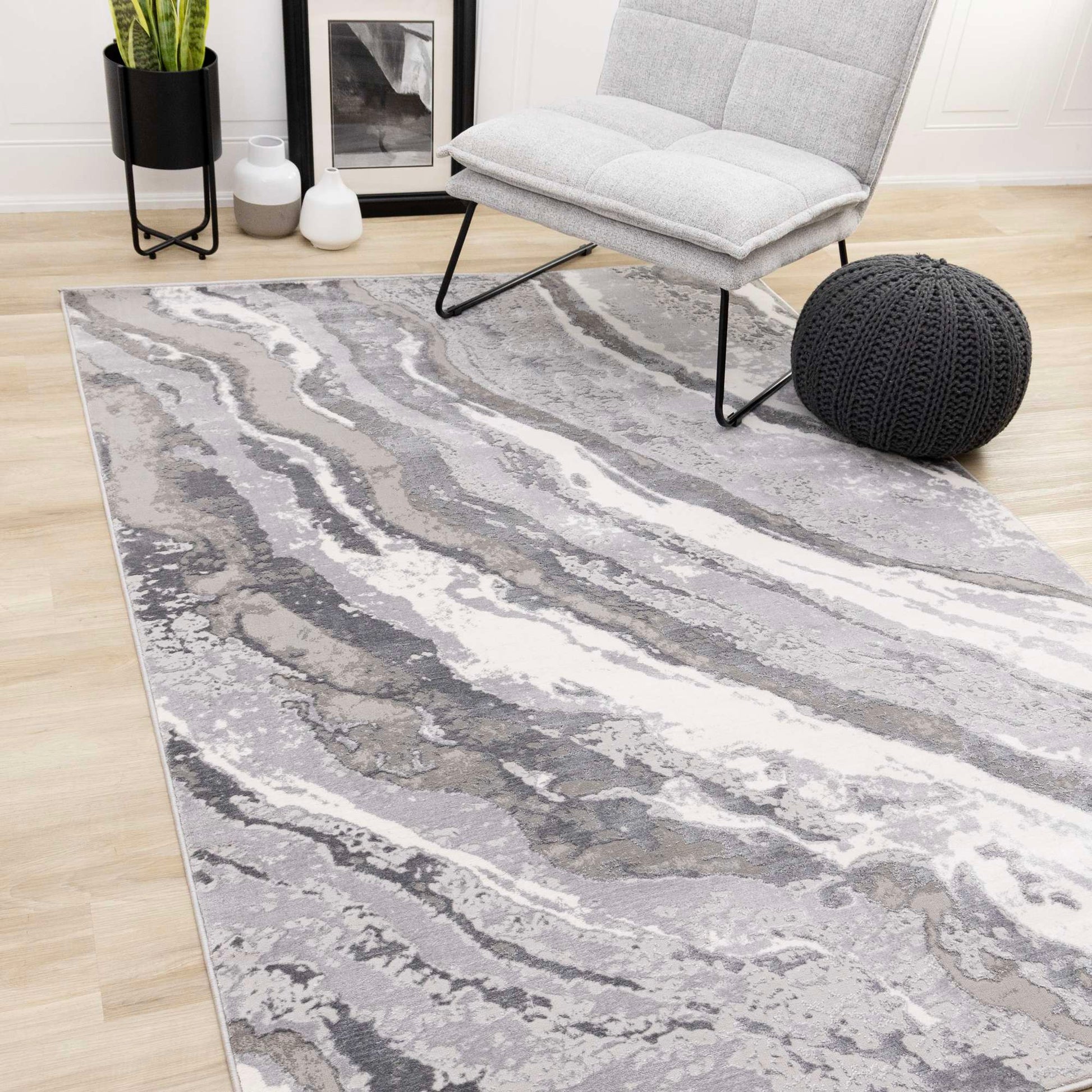 The Emory collection offers smooth, silky, soft touch plush rugs. The short pile is sleek and stain-resistant, making it easy to maintain. The beautiful contemporary designs come in a pleasing palette of cool greys, beige, taupe and white.