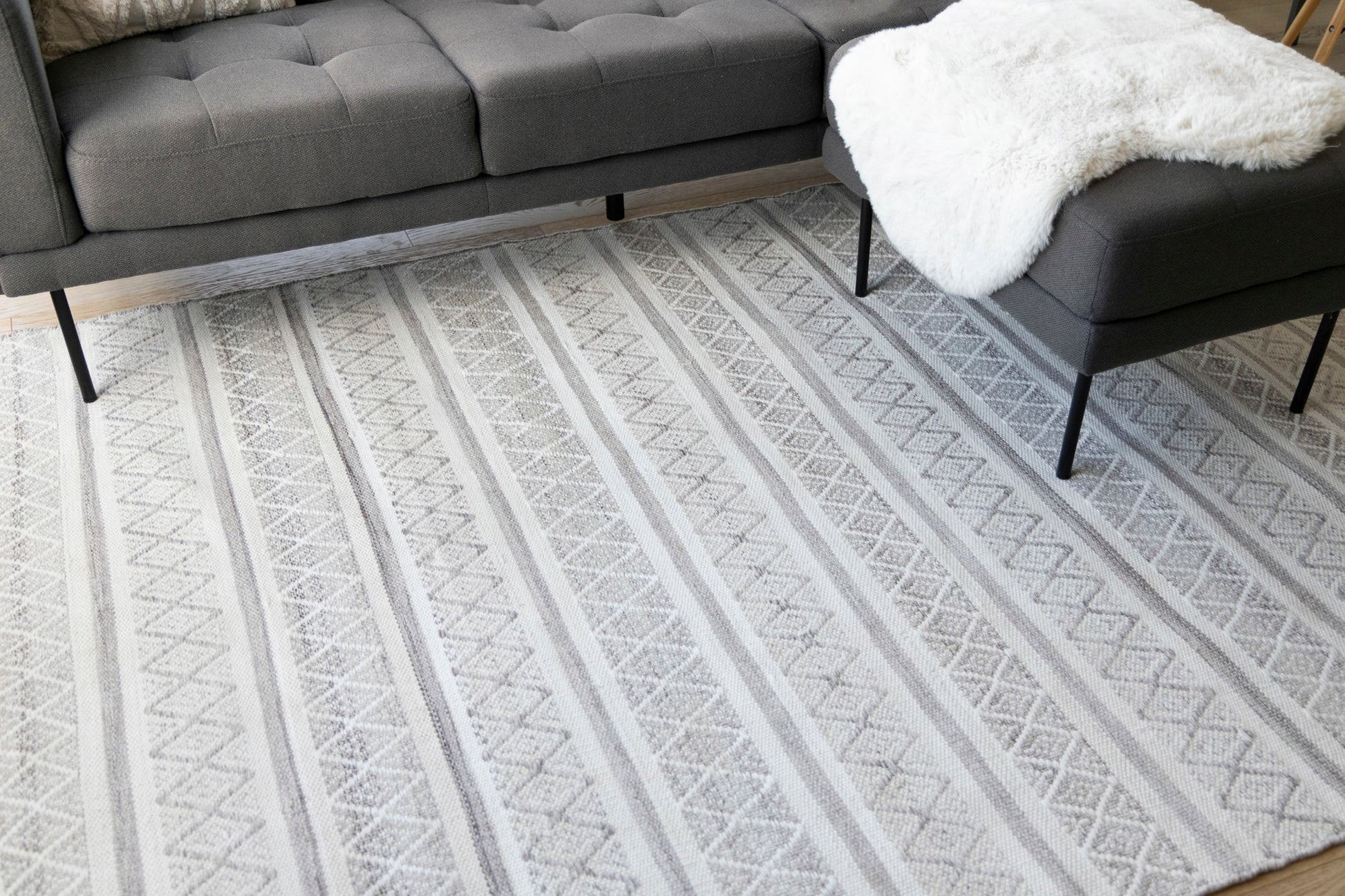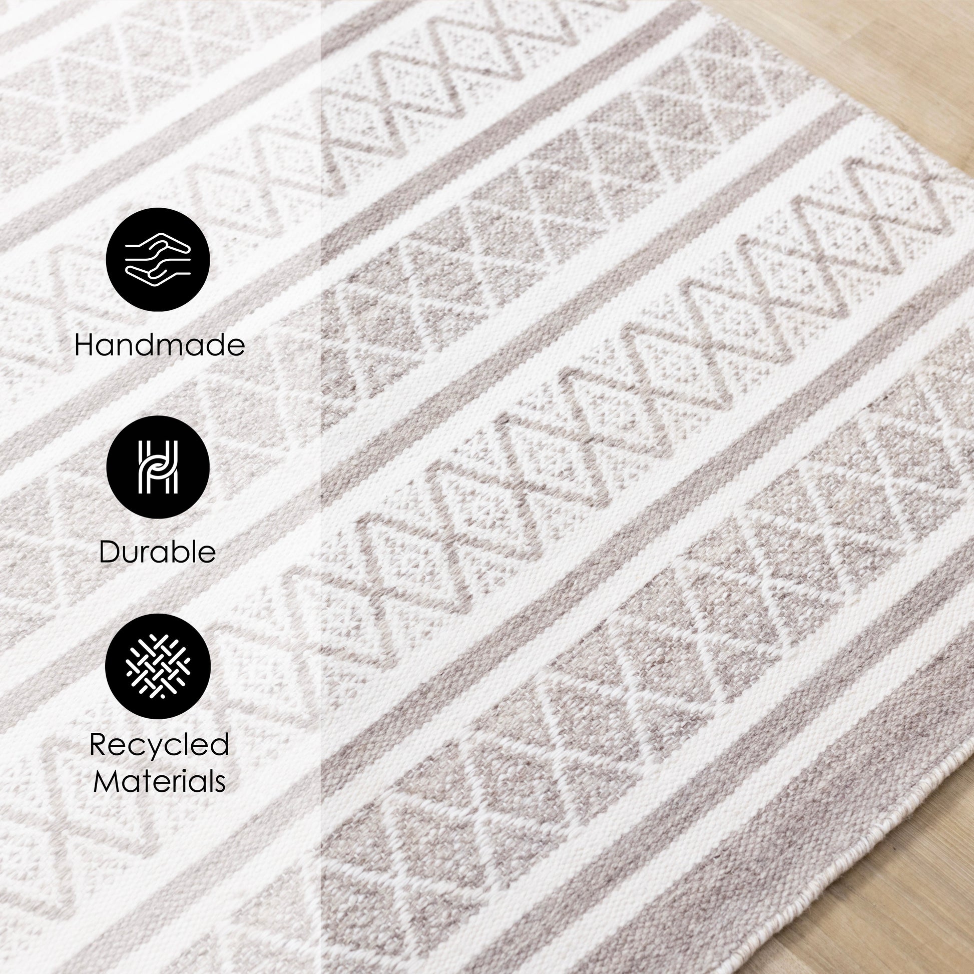 Featuring 100% recycled fibers, the Aspen Collection pairs detailed patterns with a low-profile weave. The varying color palettes ensure these rugs complement warm and natural spaces.