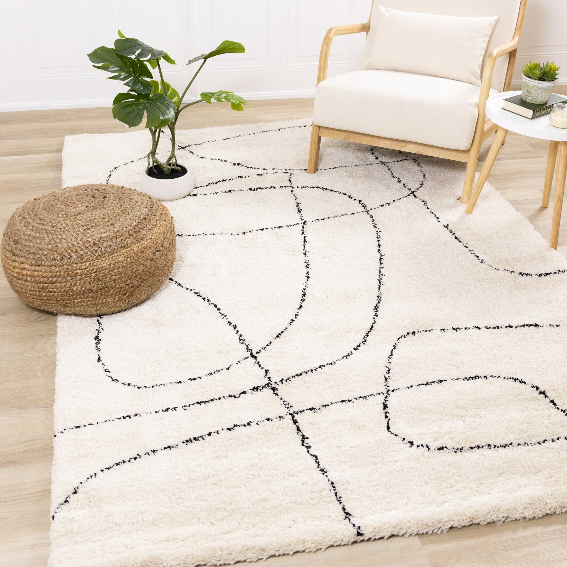 The Maroq collection is a bulky shag-like rug that includes both contemporary ethnic and modern designs. The yarn is very soft and has less twist in order to give the impression of a handspun yarn.
