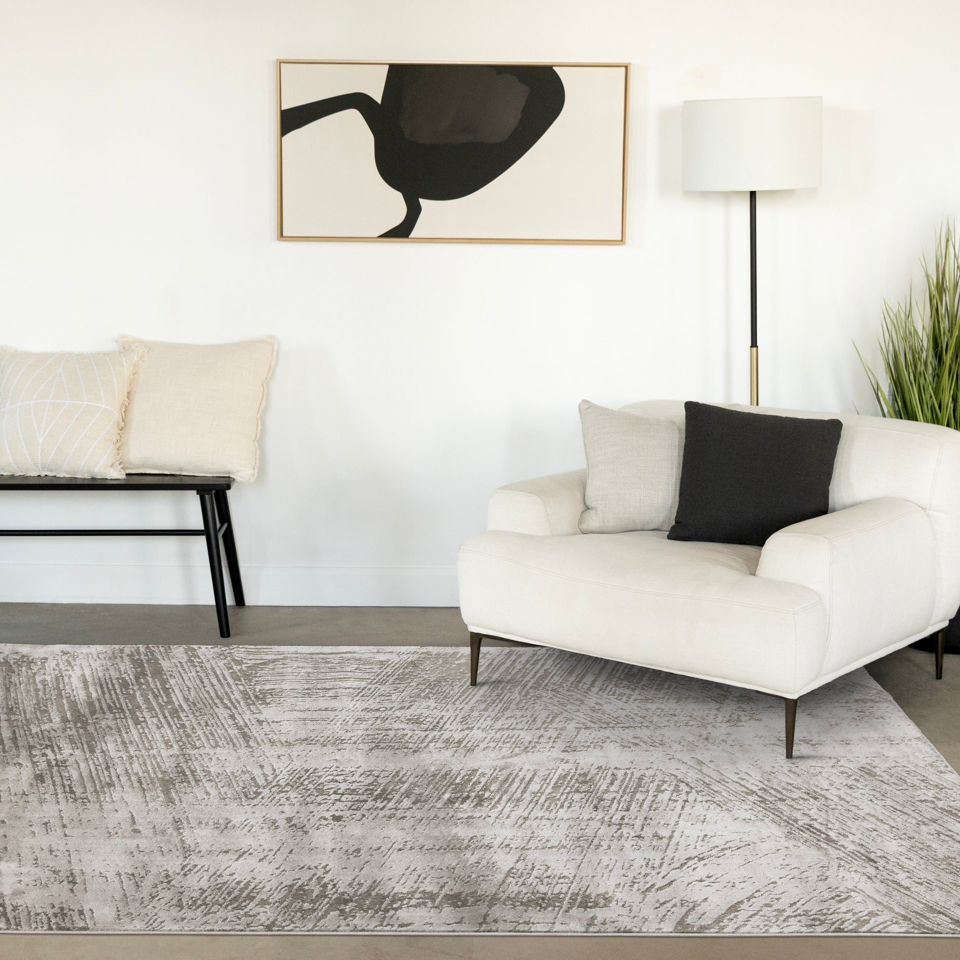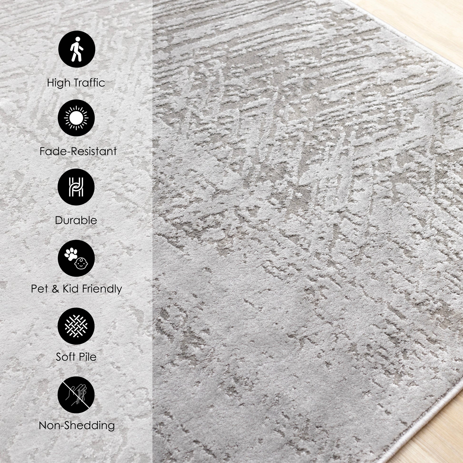 The Hayden collection features neutral color palettes and a short, soft pile. It creates a striking impression in any living space and is constructed with a durable polyester fiber, making these rugs both stain resistant and beautiful.