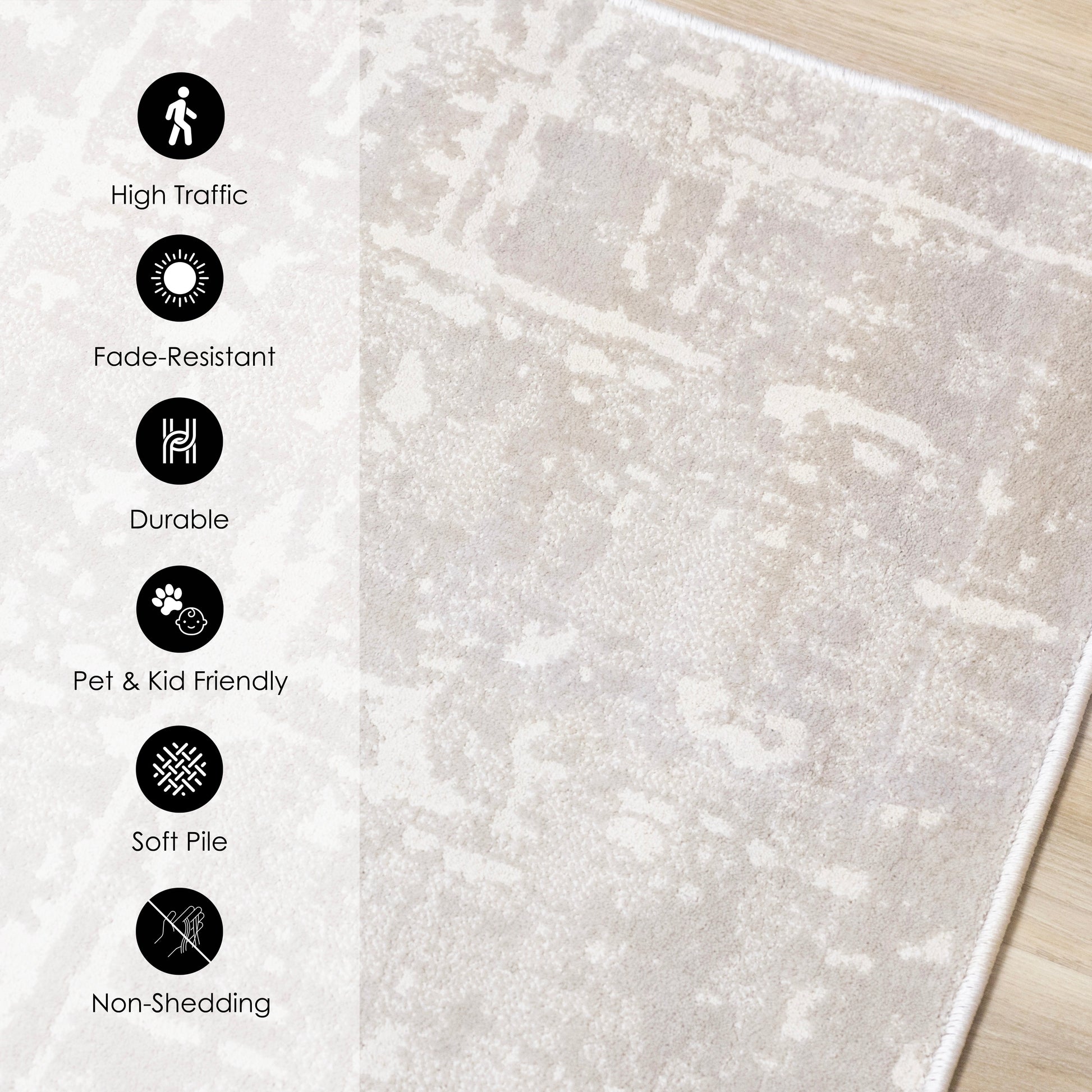 The Hayden collection features neutral color palettes and a short, soft pile. It creates a striking impression in any living space and is constructed with a durable polyester fiber, making these rugs both stain resistant and beautiful.
