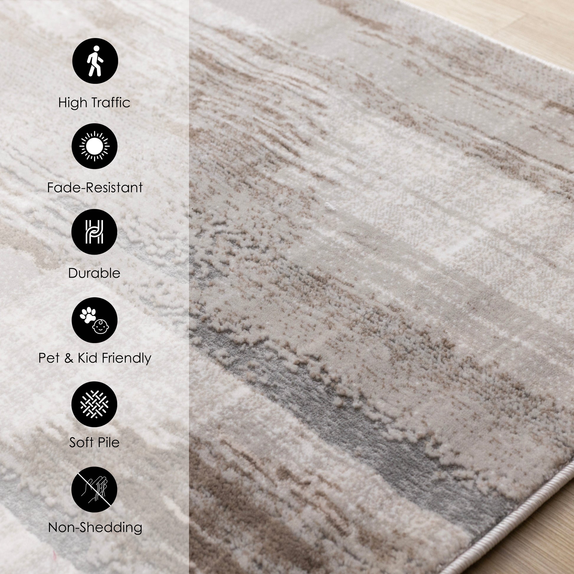 Plush rugs in the Legacy collection offer an incredibly smooth, silky, soft touch. The short pile is sleek and stain-resistant, making it easy to maintain. The beautiful contemporary designs come in a pleasing colour palette.